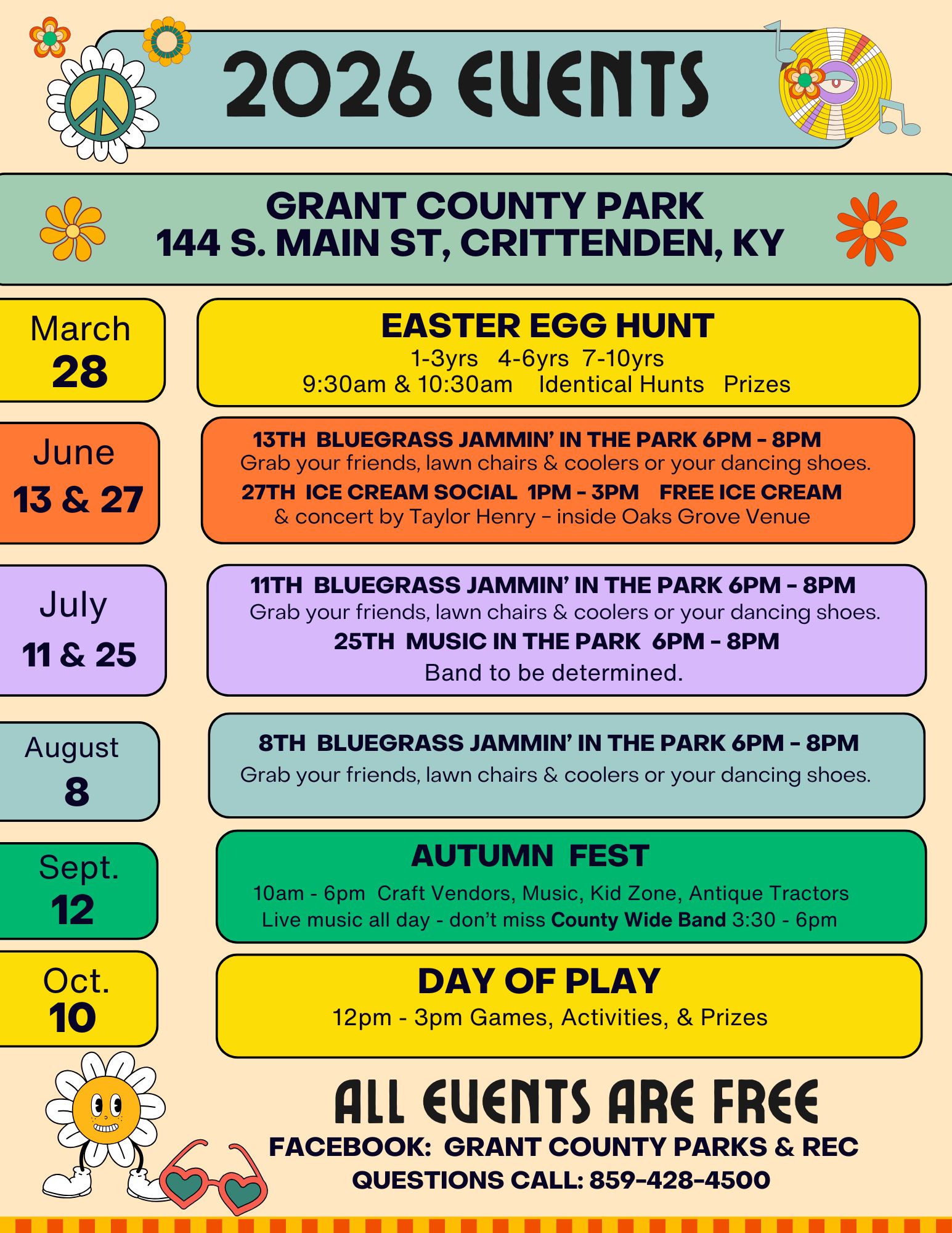 The mission of the Grant County Parks and Recreation is to provide safe, diverse parks and wholesome recreational programs and events to enhance the quality of life for Grant Countians of all ages. It is our goal to provide a wide range of organized recreational opportunities throughout the year. Picnic shelters are made available for familes and organizations on a first come – first serve basis. Please email us for more information about renting a picnic shelter.